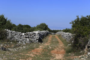 Als wir in Kolonne das Schiff verlassen, halte ich erst einmal an dem erstmals höchsten Punkt. Dieses Panorama! Ich lasse mal wieder die Drohne steigen, um dieses Bild einzufangen. Ziel- und planlos fahre ich nach Beli. Über mir kreist einer der ansässigen Gänsegeier.